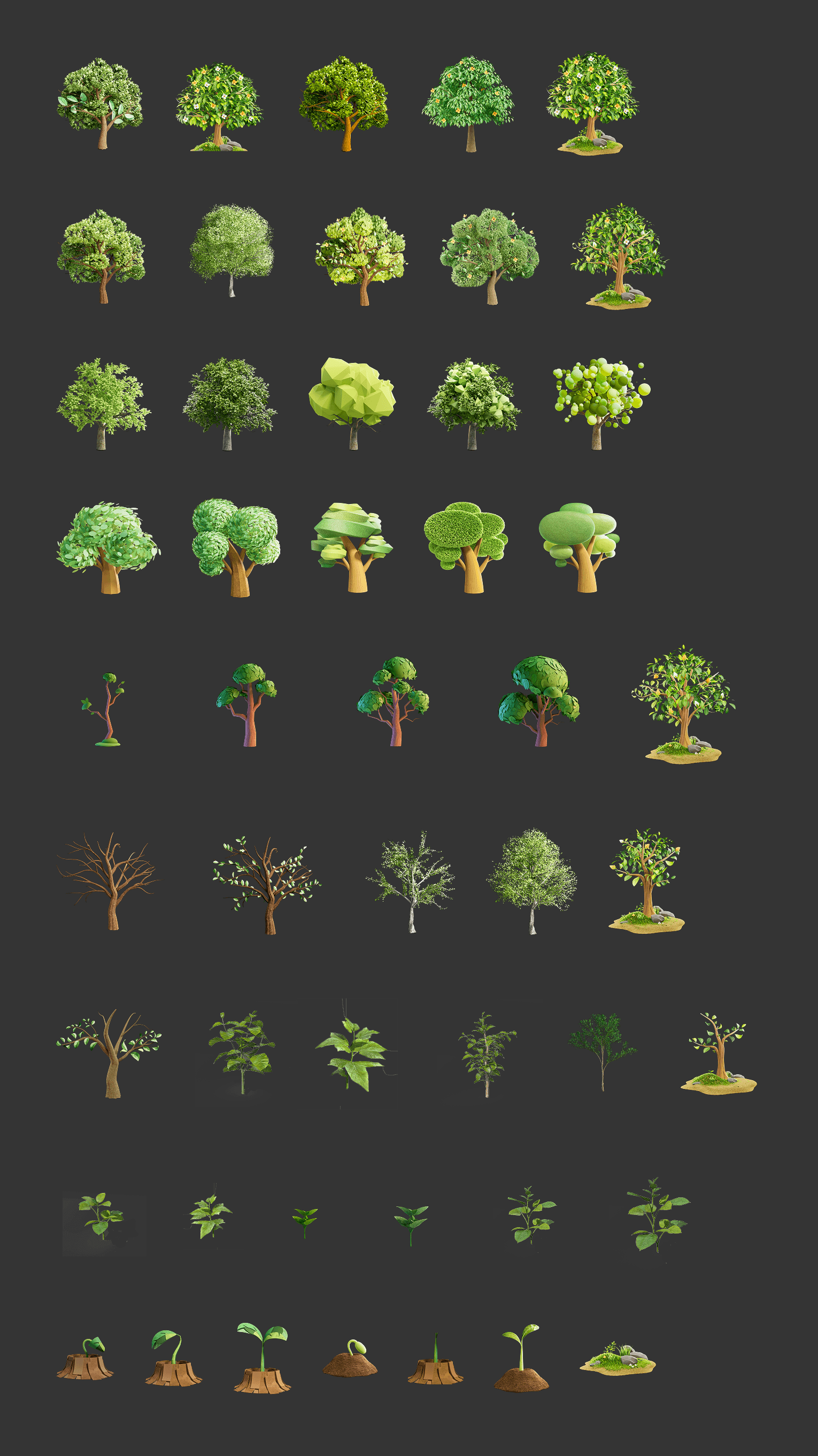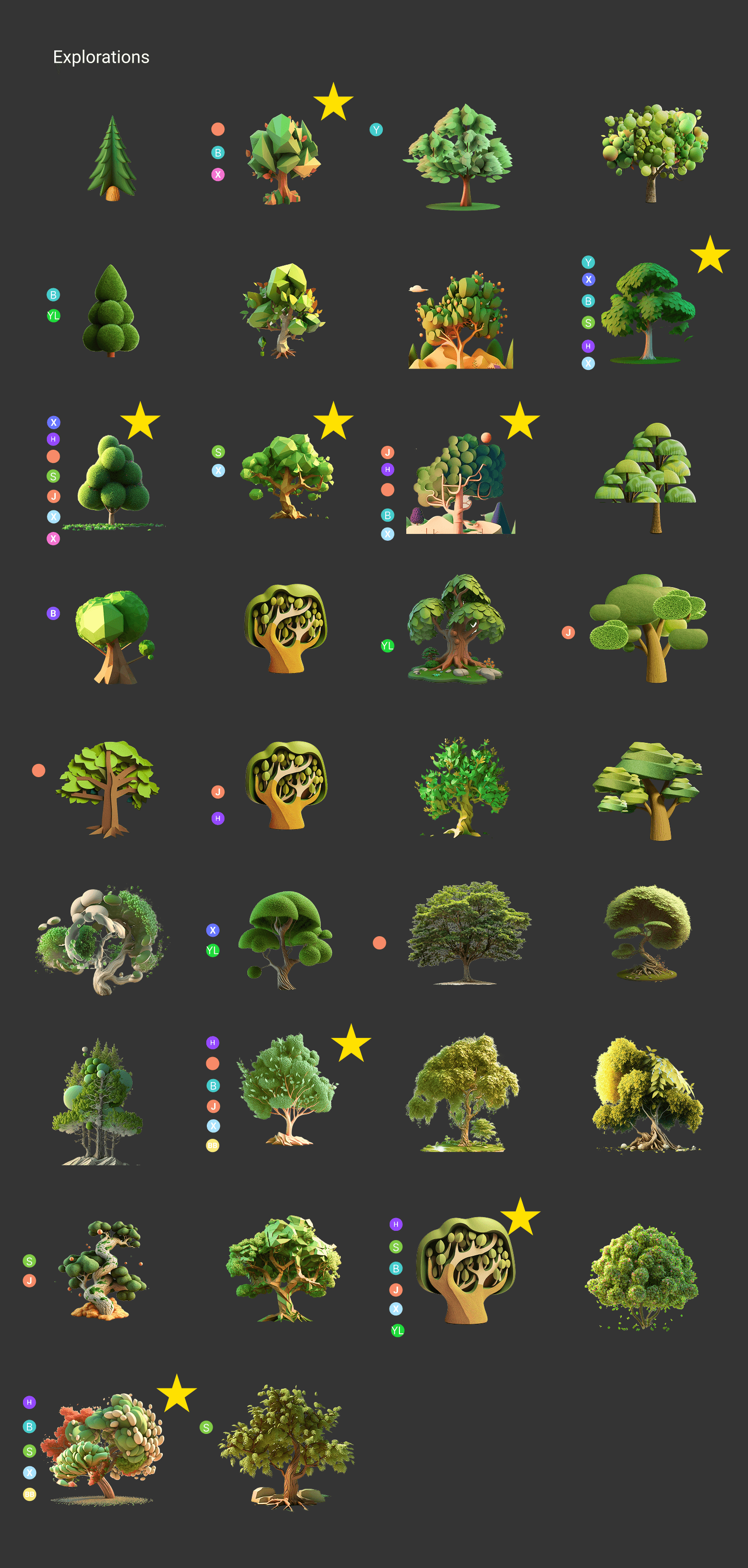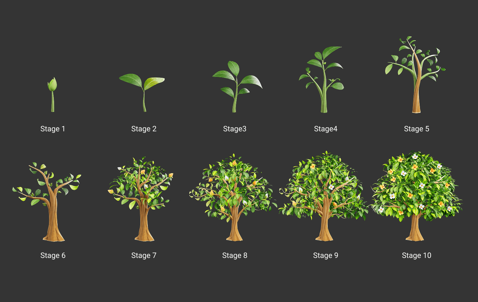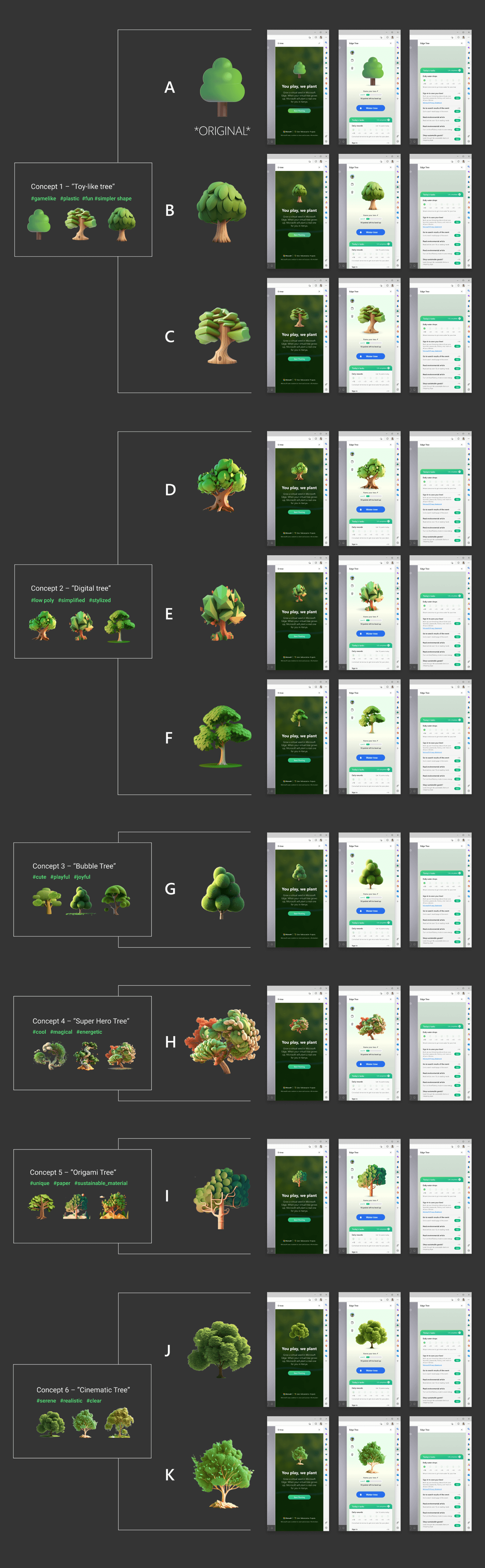 Based on the results from the user studies, we proceeded with the "Cinematic" concept by iterating on the design of the tree and how it would scale to all stages of the tree growing process.