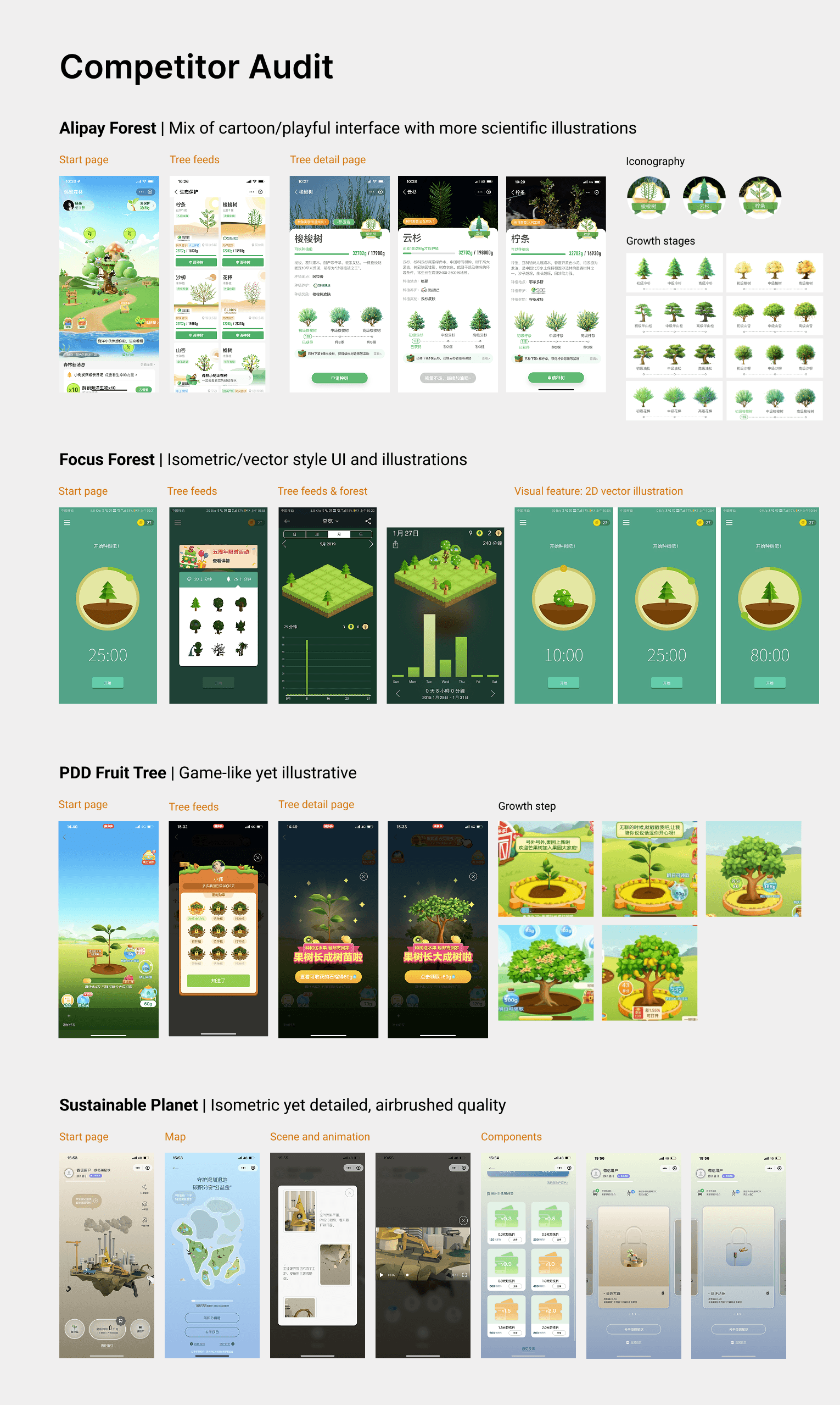 We started with an audit of competitor apps for MSN's E-Tree feature to start to identify common visual themes across similar features and establish a spectrum of cartoon-like to realistic.