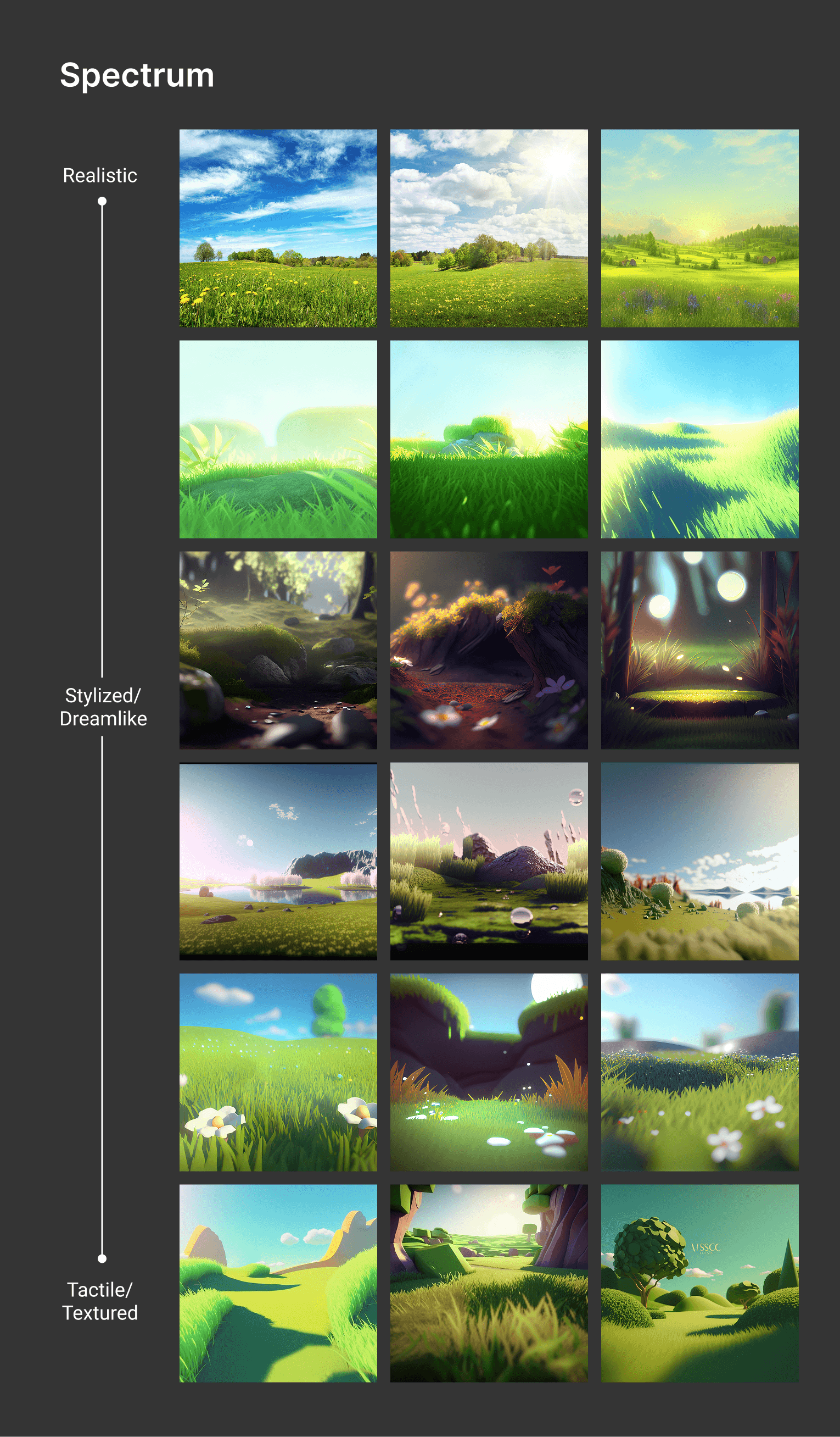 With the tree design finalized, we moved on to exploring the background visual for the feature in Midjourney, again iterating along the spectrum from realistic to more dream-like and tactile.