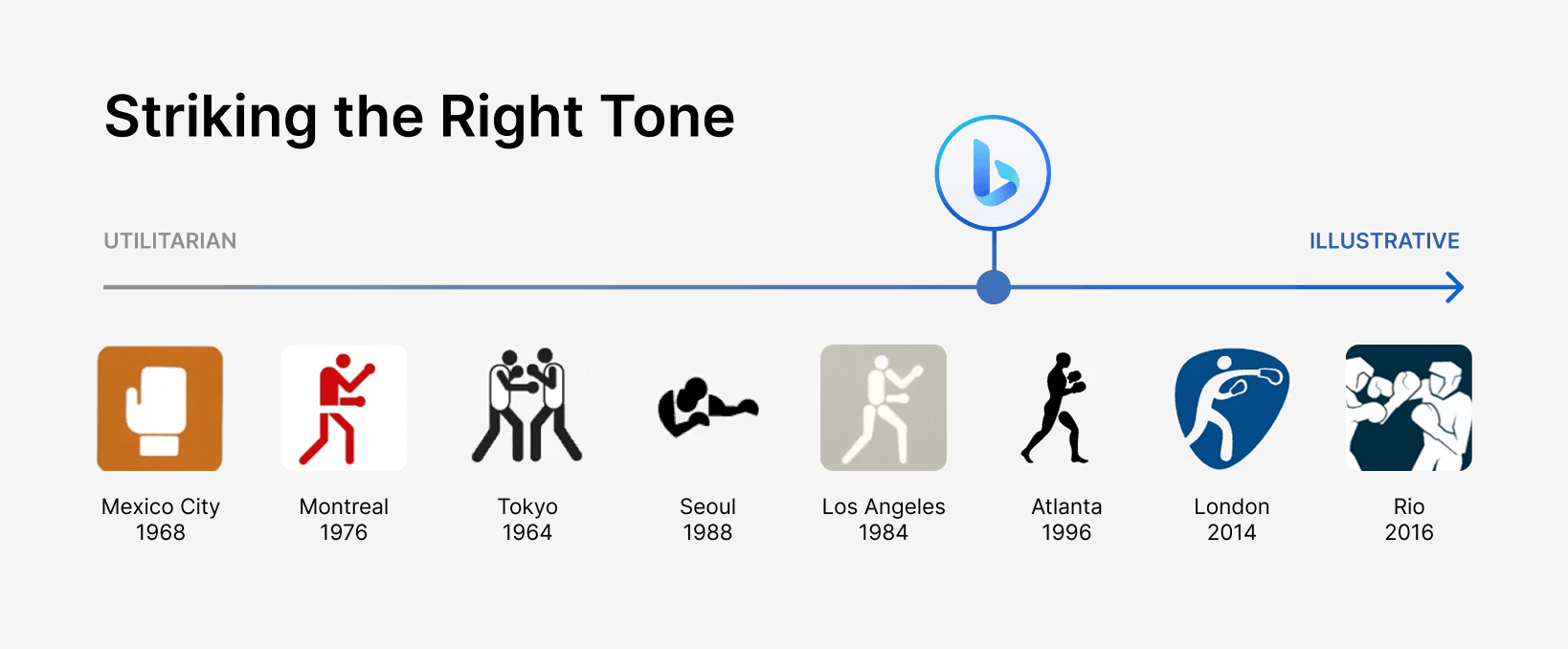As part of the design of this experience, a unique set of icons were needed to represent the different sporting events that take place during the Summer Olympic games. I partnered with the lead product designer to create a set of icons that felt aligned with our broader Microsoft Fluent icon language, as well as stood on their own to enhance the experience of Bing's Olympics answer.