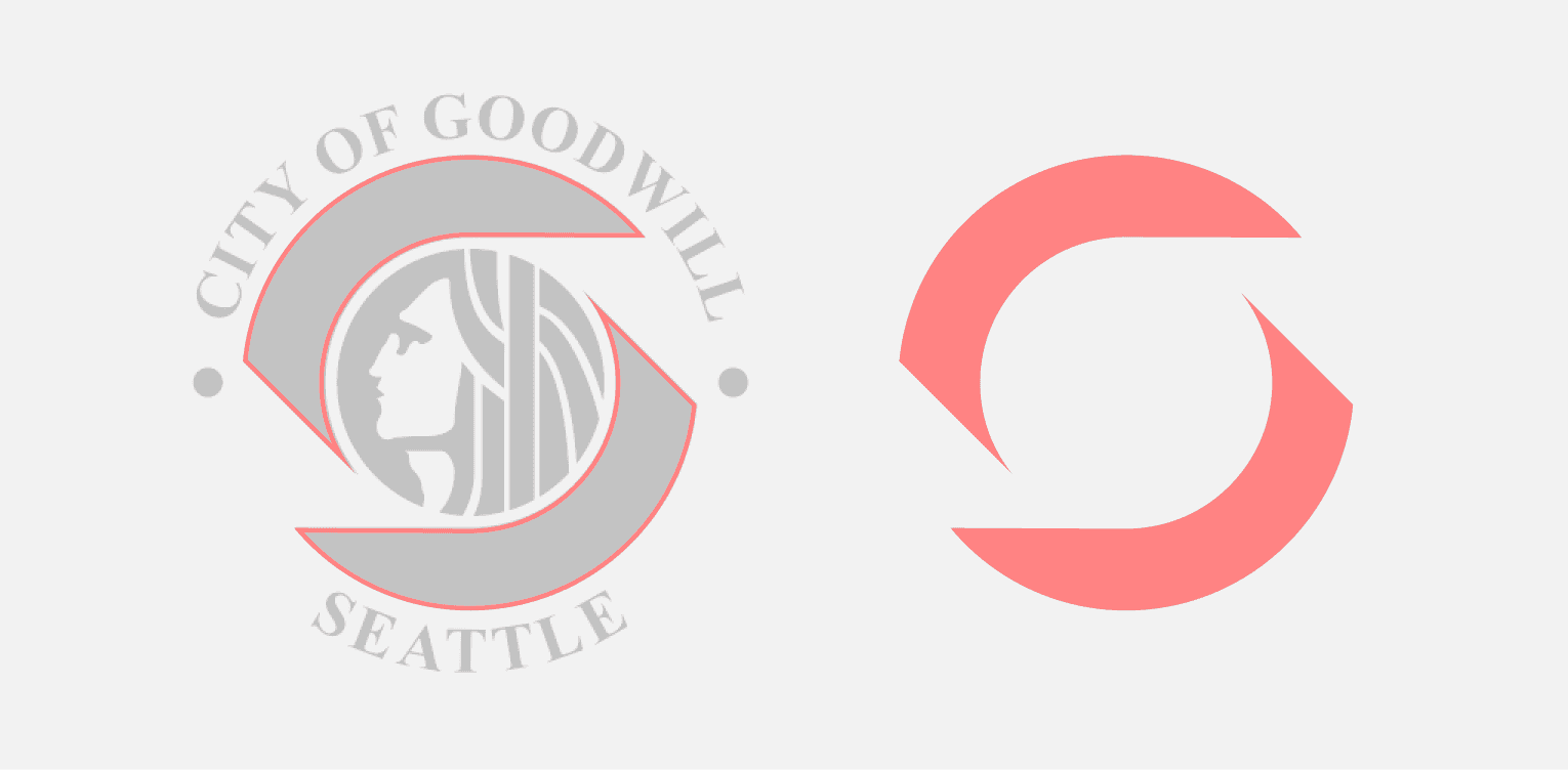 In moodboarding and initial sketching, I gravitated to the use of the city seal of Seattle. I felt the "S" shape created by the forms on top and bottom of the mark would lend itself well to represent motion lines when placed around a centered element. I also like the simplicity of the form and how it can be flattened to a single color and still maintain legibility.